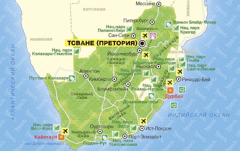 ЮАР – страна, которую следует посетить из-за ее непохожести на другие страны, особый колорит, красивейшую природу. Здесь вы получите массу незабываемых впечатлений. Обязательно попробуйте известное на весь мир южноафриканское вино и привезите какой-нибудь местный сувенир, который будет вам напоминать об этой интереснейшей поездке.