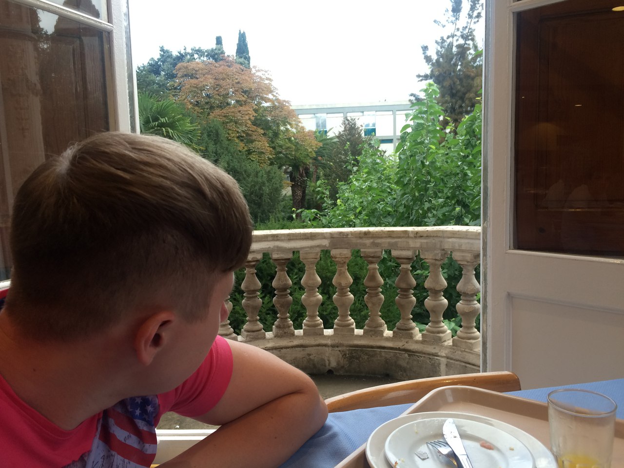 В стоимость проживания входил завтрак - сок, чай, кофе, выпечка, йогурты, бекон, колбаса, тостеры, сыр, хлопья голодными не останетесь! Если кушать за одним из тех столиков которые находятся в конце зала, то с них открывается шикарный вид на сад с открытого балкона.