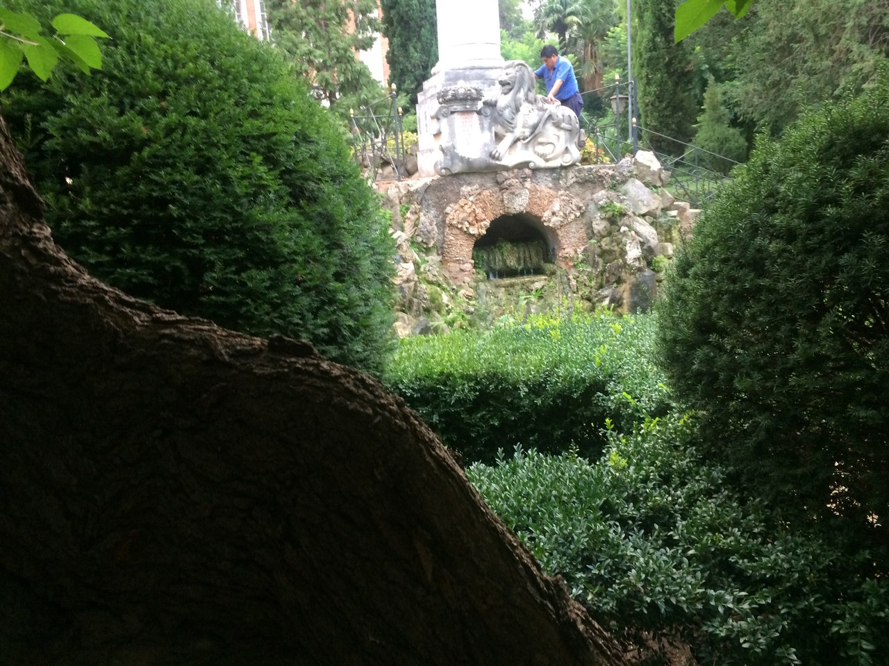 Больший парк с дорожками выложенными из плитки, много скульптур и памятников, не большой водоем с плавающими черепашками в нем, много растительности, фонтанчики, удобные скамейки, на которых мы сидели поздно ночью кушая апельсины и выпивая испанскую сангрию это было прекрасно. Очень богатая территория есть даже зеленая лужайка на которой можно поваляться днем под солнцем, за одним из строений есть небольшая оранжерея.